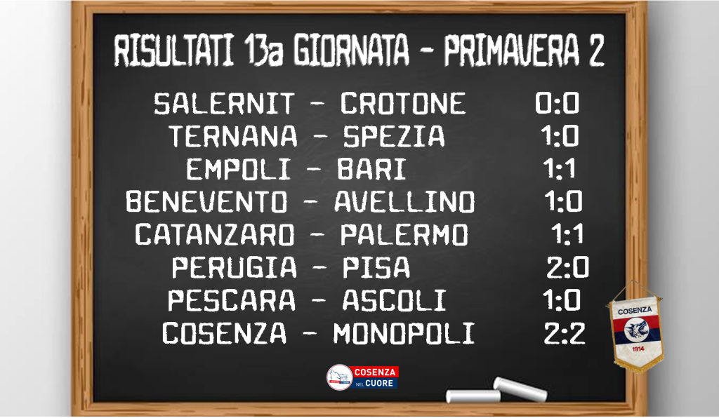 Pausa natalizia ora, si ritorna in campo il 10 gennaio, con un bel Pisa-Cosenza .